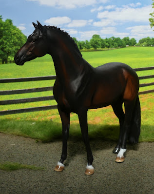 I've named him Harecroft Maestro, though I haven't picked a breed for him, yet. The resin was sculpted as a Hanoverian, but they're one of the heavier warmblood breeds, and as he's much the lightest conformation compared to my CollectA warmbloods, I think he ought to be allocated one of the finer types.